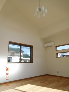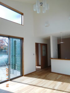 10月 18, 2023 / 最終更新日時 : 11月 10, 2023 admin 戸建て住宅 M様邸(草加市) 大きな片流れ屋根により1 階の居間が高さのある勾配天井になりました。明るく広いリビングです。