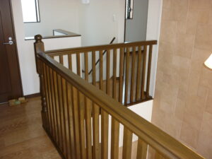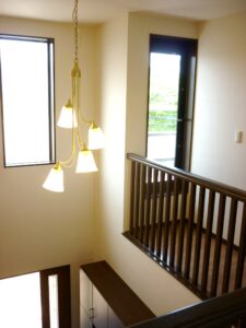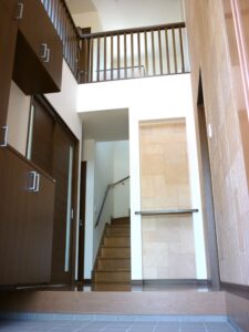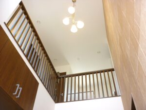 玄関へ入り目線を上げると2階廊下へと続き、とても広い空間となりました。